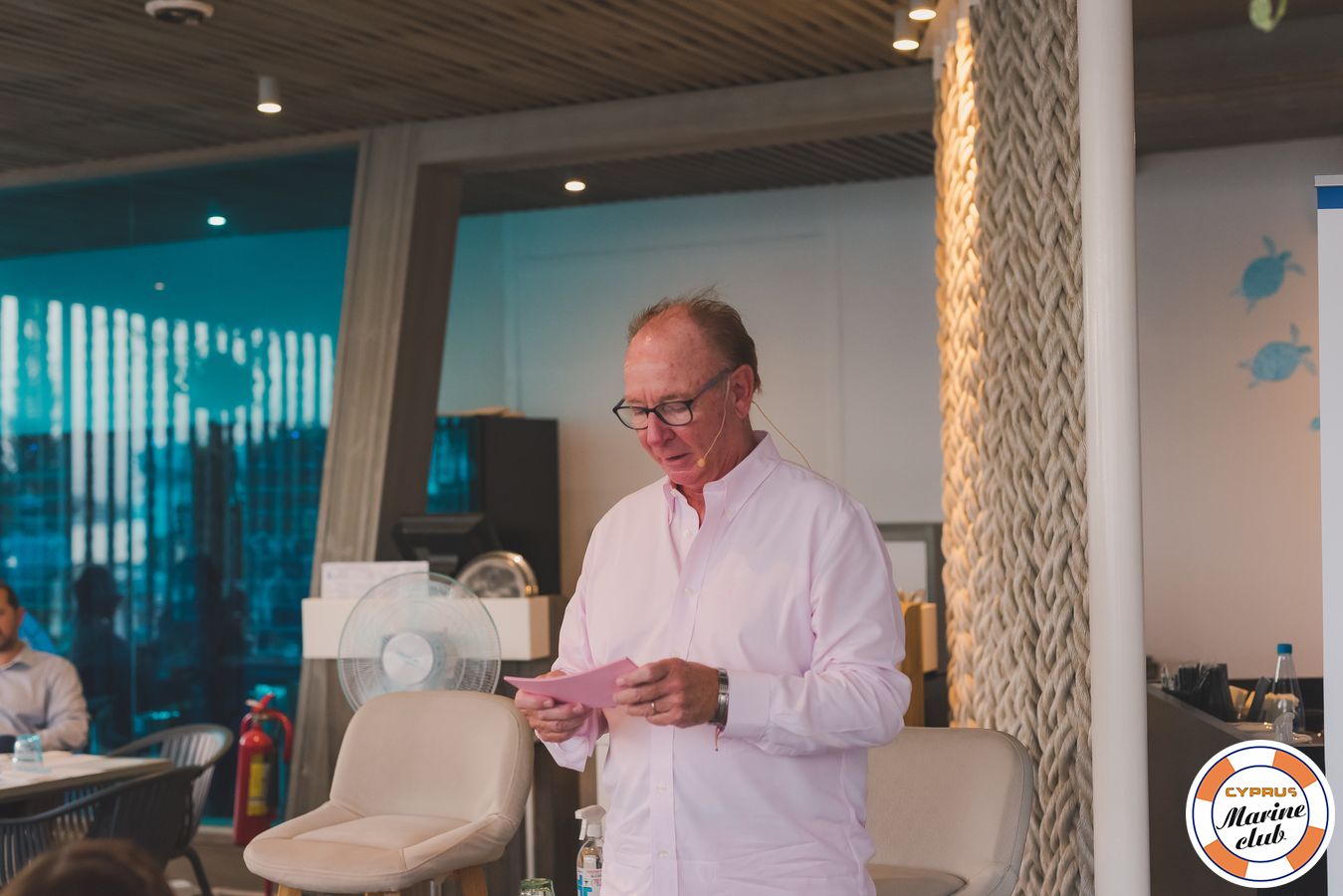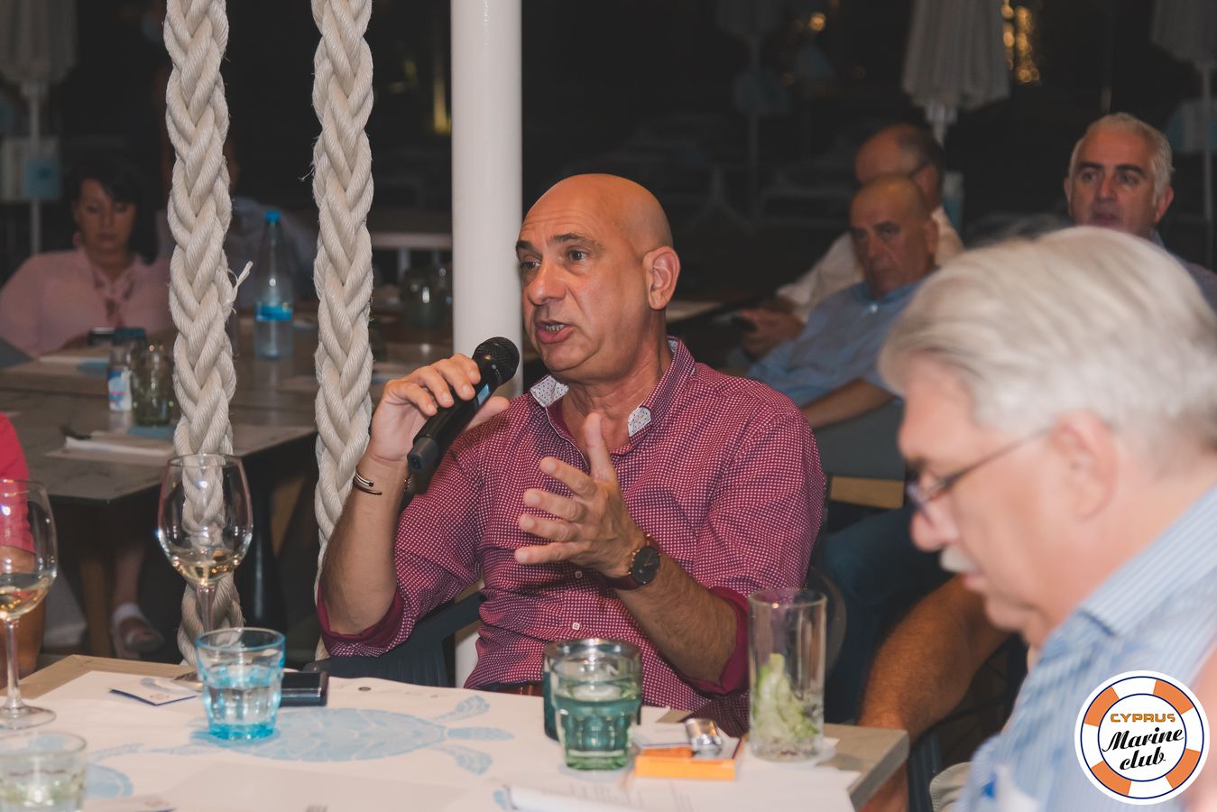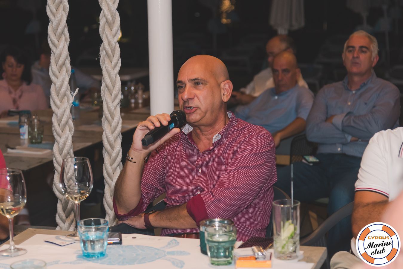 President of Cyprus Marine Club, Captain Eberhard Koch, in his opening statement, advised that he was very happy about the high number of participants at the event as well as the positive membership development and warmly announced the special guest of the evening.