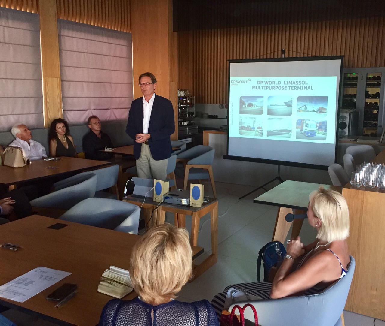 Limassol, September 5, 2017– At “Home of the Cyprus Marine Club”, Epsilon a Board Meeting was followed by two engrossing presentations on development and condition of Cyprus Ports given by the Vice Chairman of Cyprus Ports Authority – Mr. Thrasos Tsangarides and General Manager DP World Limassol – Mr. Charles Meaby . Despite the fact that H. E. Minister of Transport, Communications & Works, Mr. Marios Demetriades could not deliver his lecture due to other, top – priority commitments, the Cyprus Marine Club President – Capt. Eberhard Koch and attentive audience demonstrated their appreciation to Mr. Tsangarides and Mr. Meaby by active open discussion afterwards.