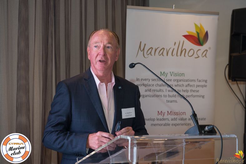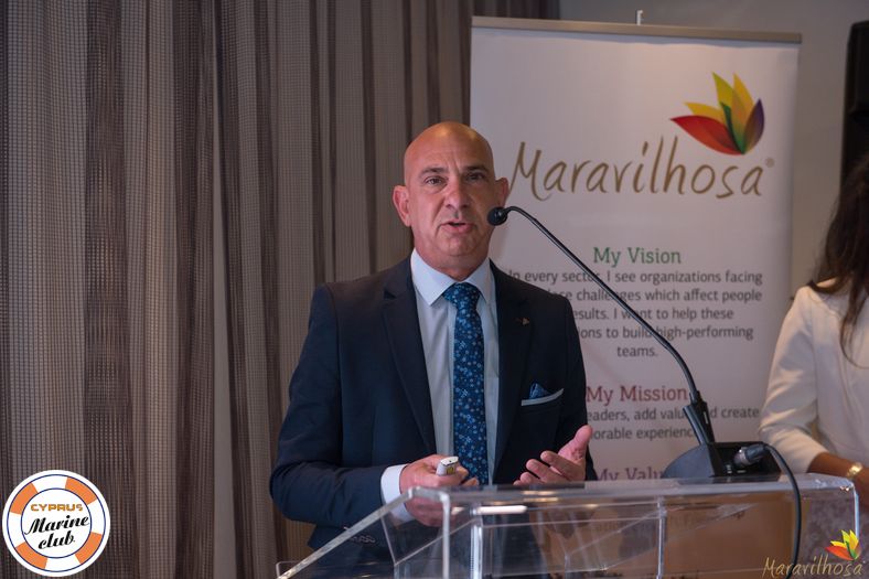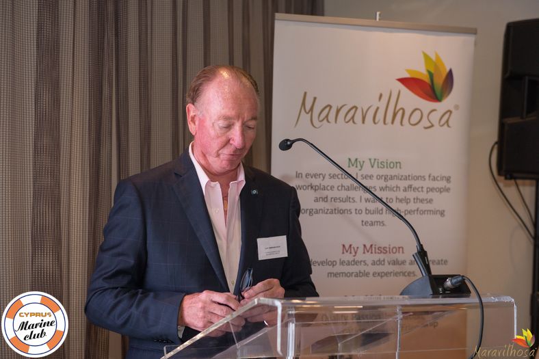 In his welcome speech, Capt. Eberhard Koch, Chairman, CEO and Partner, Oesterreichischer Lloyd Shipping Group welcomed the Cyprus Marine Club’s first Brainstorming event and said the Club lives from the extraordinary 107 members so far. Captain Koch mentioned that in July 2018, Maravilhosa was piloting the Club members to create its slogan “The Fellowship of the Seas”. And when Maravilhosa introduced the idea of a brainstorming session a couple of months ago, the entire Board was very enthusiastic. Captain Koch thanked Muriel Matta for the tremendous, hard work to organize this very special event and handed her a thank you gift on behalf of the Club. Captain Koch concluded by wishing everyone to be influenced, energized and inspired by the brainstorming session.