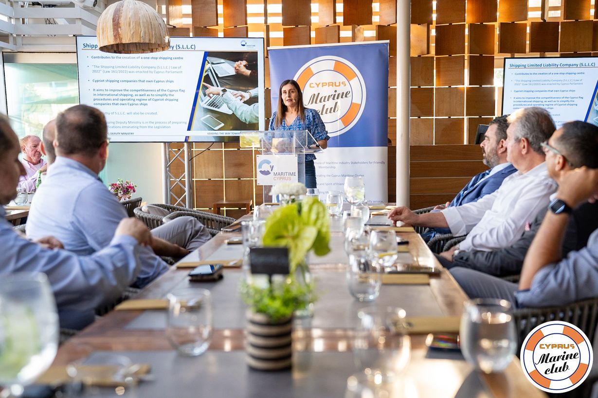 On 27th June 2023 Cyprus Marine Club had the honor to host the Shipping Deputy Minister to the President, Ms. Marina Hadjimanolis who was sharing with us her first impressions of over 100 days in the Shipping Deputy Ministry Office. Mrs. Marina Hadjimanolis was officially appointed a Shipping Deputy Minister on March 1st, 2023.