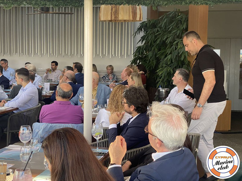 Capt. E. Koch welcomed members with a brief update and shared membership numbers (135 on the day) and announced the next events on 21st June by Cyprus Integrity Forum entitled: Cyprus’ sole anticorruption organization” , on July 1st : EGM, AGM and Annual Dinner of CMC at Amara Hotel. Capt. E. Koch also announced Wine and Dine Event at Omodos on September 17th and then a special event on October 7th, organized on the occasion of Maritime Cyprus 2022 with a guest of honor – Mr. Andreas Hadjiyiannis, the President of the Cyprus Union of Shipowners.